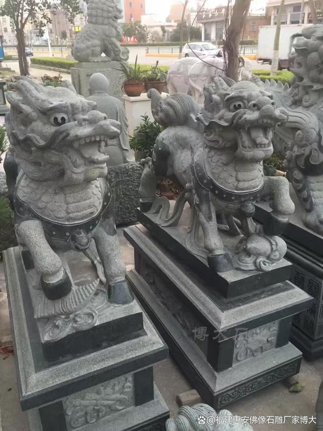 这种石雕麒麟的复古不仅仅是在外观上复现了古代的雕刻技巧,更在精神层面上与现代建筑进行对话。比如在一些新建的高楼大厦或商业区,麒麟雕像常常出现在建筑的门口或显眼位置,成为吸引目光的亮点。它们不仅传承了中华文化的符号意义,也成为了现代建筑中独特的文化标识。在玻璃幕墙、钢筋混凝土等现代建筑材料的包围下,石雕麒麟显得尤为突出,像是历史与现代交织的桥梁。